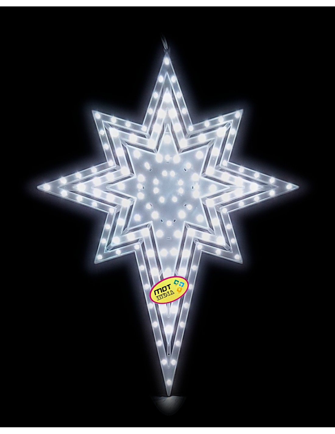 Equipped with a chaser control unit, the Star Lyra White offers multiple flashing modes, allowing you to create the perfect ambiance—from a gentle, steady shine to eye-catching twinkling or dynamic light patterns. Powered by a 220V AC input, it ensures consistent brightness while being energy-efficient. Measuring 22 inches in height and 16.5 inches in width, this LED star is large enough to be a centerpiece in any decorative setting yet light enough for easy hanging and repositioning. Whether placed on a wall, door, balcony, or used as a glowing window accent, the Star Lyra White blends minimalist elegance with radiant illumination to make your celebrations unforgettable.