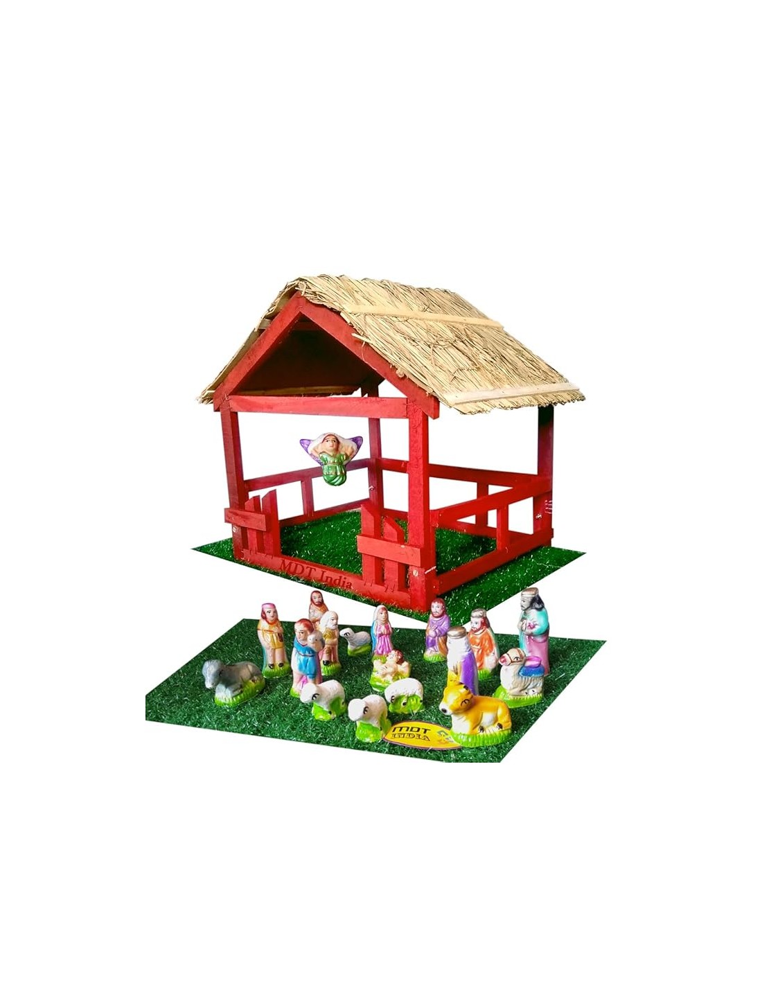 To complete the scene, the set includes a green floor mat measuring 2 feet × 1.5 feet, mimicking lush grass to create a natural setting for your nativity display. This thoughtful addition enhances the visual appeal and brings the holy scene to life.