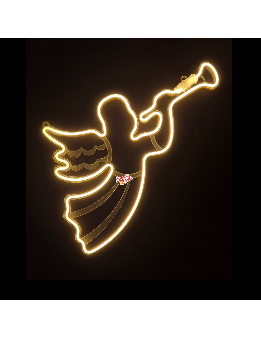 SANTABELLS Christmas Decoration LED Light Neon Angel Comes With Wam Color Neon LEDs . Measures 32 X 54.5 cm build with white color plastic frame .