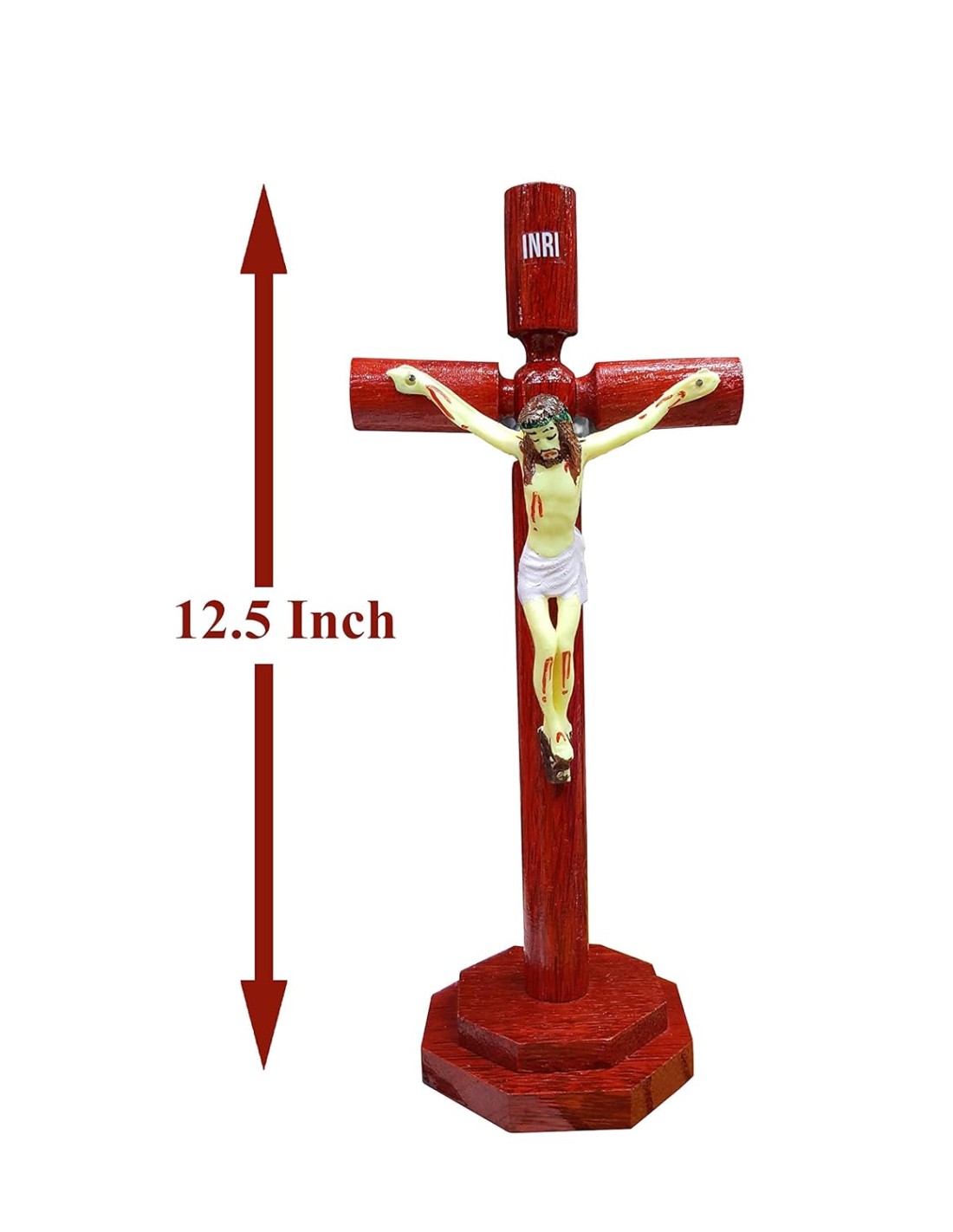 Each statue is made by skilled artisans, ensuring fine detailing of Christ’s figure on the cross. The smooth wooden polish, handcrafted finish, and durable frame material make it both a devotional article and a decorative piece.