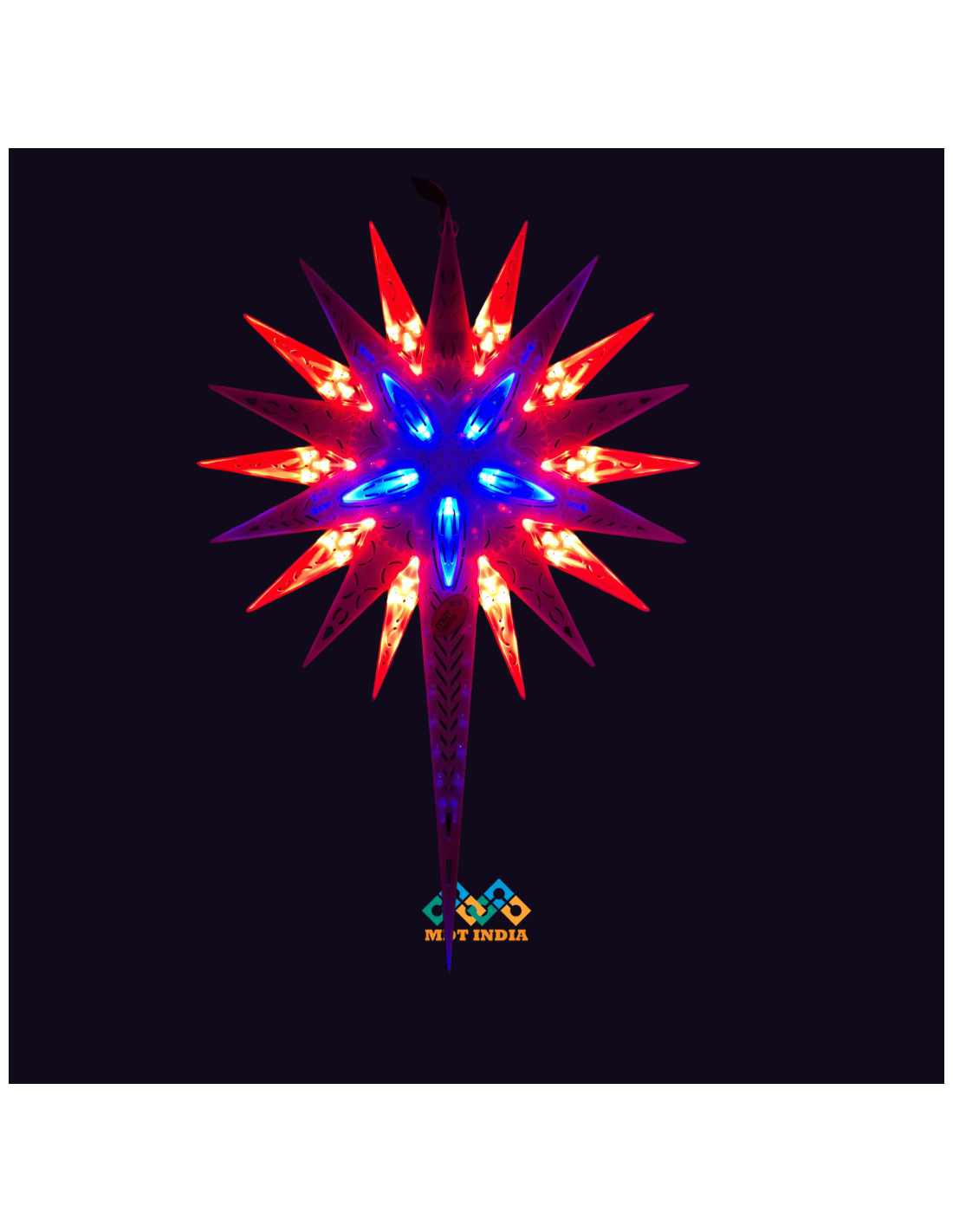 Bring home a breathtaking festive statement piece with the Jumbo 20-Petal Sunflower LED Star by MDT India. This oversized decorative light captures the essence of celebration with its vibrant red, white, and blue LED illumination that radiates warmth and joy.